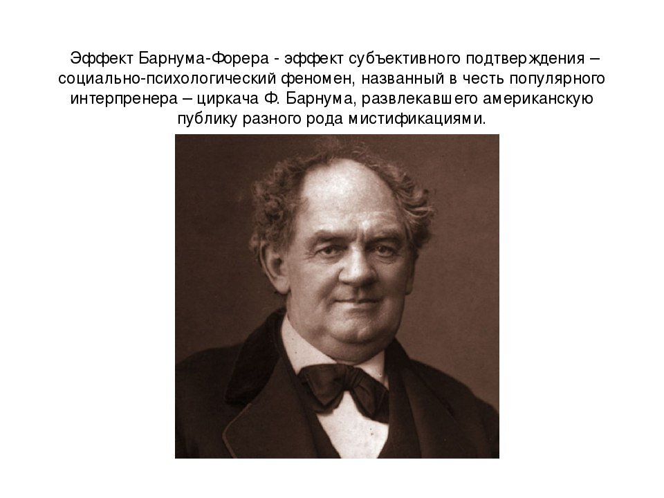 Эффект Барнума Форера Эффект раскрывает суть феномена, почему, несмотря на то, что большинство людей, осознают сомнительный характер различного рода предсказаний, порой почему-то все же им верят. Это объясняется тем что человек склонен доверять информации, у которой есть следующие характеристики: - предназначена лично для человека; - содержит позитивные моменты; - преподносится авторитетным лицом. По мотивам сегодняшнего обращения клиента на вопрос : есть ли в его характере черты нарциссической личности и как это отражается на его жизненном сценарии. Клиент уверен, что быть нарциссом плохо, потому что перечитав кучу профессиональных статей в интернете, сделал вывод, что он именно такой неисправимый, лишенный эмпатии и зависимый от восхищения окружающих человек. В последнее время " нарциссизм"стал не просто модной и популярной темой обсуждений и дебатов на психологических форумах. Этот термин изобилует в СМИ, склоняется и употребляется в бытовых разговорах. Грядёт "эра нарциссов", что д