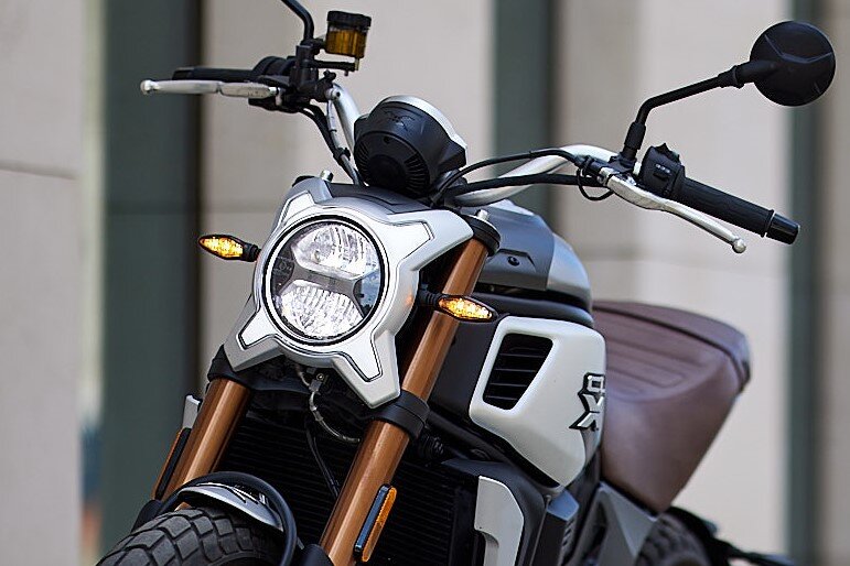 Тема «Х в круге» обыграна дизайнерами несколько раз: на крышках мотора, в конструкции фары, на приборной панели. Элемент простой, но запоминающийся, да и на узнаваемость мотоцикла положительно влияет. Фара, благодаря ободку с хвостиками от «икса» выглядит симпатично и хорошо видна в зеркалах заднего вида. Раздельные сектора ближнего и дальнего света — светодиодные, они хорошо заливают дорогу голубовато-белым светлым пятном. Ближний при включении дальнего не гаснет. Свет добротный, в апгрейде не нуждается.