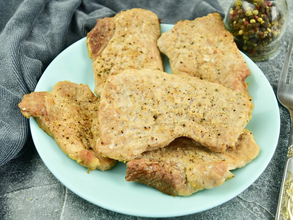 Если хочется приготовить мясное блюдо максимально быстро, тогда стоит обратить внимание на этот рецепт. Он настолько простой, а результат просто отменный. Для приготовления отбивных из свинины стоит использовать такое мясо, которое можно легко нарезать именно на отбивные. Из специй лучше всего использовать соль и смесь перцев. Смазывать же дополнительно мясо соусом перед запеканием не нужно. Подавать готовые отбивные из свинины лучше всего с каким-то овощным салатом. Из гарнира выбор можно остановить на картофельном пюре или же какой-то крупе, к примеру, гречке. Ингредиенты Приготовление: 1. Подготовить необходимые ингредиенты для приготовления отбивных из свинины в духовке. 2. Нарезать острым ножом мясо, как на отбивные. 3. Сверху накрыть его пищевой пленкой или самым обычным пакетом. Отбить молоточком. 4. Посолить каждый кусок мяса. 5. Затем поперчить. 6. Переложить отбивные на противень. Отправить в духовку на 30-40 минут. Температуру установить 190 градусов. 7. Аккуратно достать пр