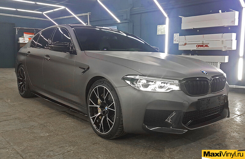 Клиент на данном BMW M5 пожелал повторить заводской серый матовый металлик кузова F90. Это довольно-таки интересный и красивый, в то же время строгий цвет, с названием «древесный уголь», который совмещает в себе свойства сразу нескольких пленок. На солнце он пылает металлической крошкой, переливающейся на матовом покрытии, но стоит только заехать в тень, как он тут же превращается, в строгий серый графитовый цвет, чем-то напоминающий цвет мокрый асфальт. На наш взгляд, M5 в кузове F90 в данном цвете смотрится очень гармонично. Название материала: Avery Dennison Matte Metallic Charcoal