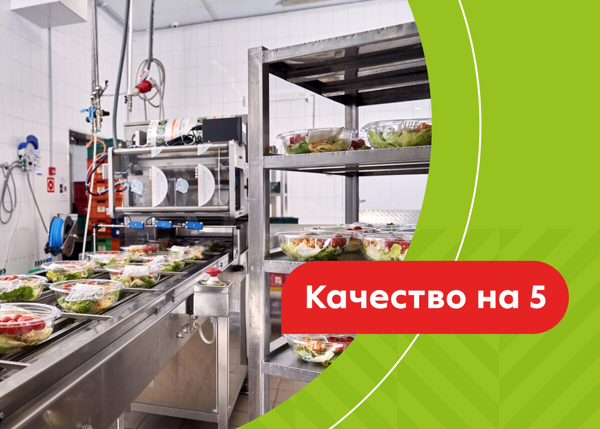 Какой он, идеальный салат? Тот, который не залежится в холодильнике, потому что вы точно рассчитали порцию и потому что в его составе только свежие и качественные продукты. А ещё его не надо готовить. Где найти такой салат, спросите вы? Всё просто — в отделе кулинарии в «Пятёрочке». В магазинах нашей сети большой ассортимент готовой еды: более 300 видов салатов, основных блюд, сэндвичей и роллов, корейских закусок, выпечки и завтраков. Всё это мы готовим на собственной фабрике-кухне под брендом «Рестория Шеф». Фабрика-кухня Основную часть блюд «Рестории Шефа», которую вы покупаете в Москве и Московской области, мы производим на фабрике-кухне Х5. Благодаря этому удаётся контролировать качество продукции на каждом этапе: сами разрабатываем рецепты, сами готовим и развозим еду по магазинам. Кроме того, собственное производство позволяет продавать продукты по более низкой цене, что немаловажно для покупателя. Разрабатывать кулинарное направление нам помогали европейские консультанты. Обору