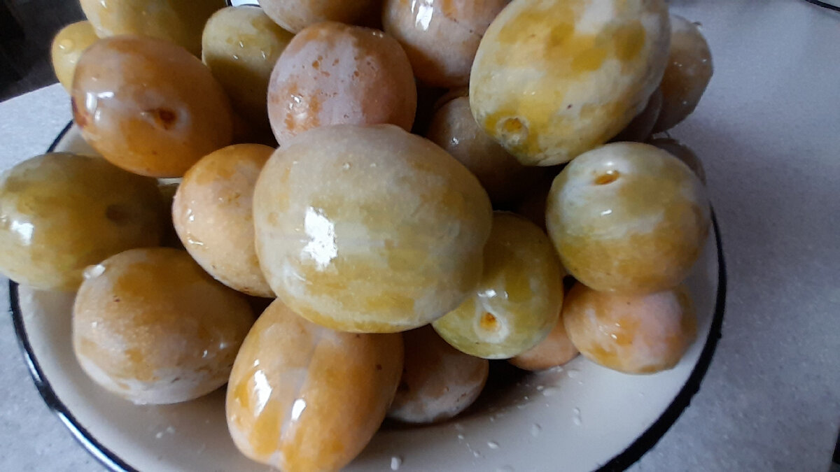 Добрый день , может у кого уже и вечер дорогие зрители и любимые подписчицы и подписчики вновь рада видеть всех вас. Предлагаю вам варенье из желтых слив. Когда оно застывает получается достаточно густое и с ароматом семечек из косточек слив. Если вы такого еще не варили и любите желтые сливы не замедляйте и пробуйте это очень и очень вкусно. Использую много где в выпечке, в кремах , просто с чаем и т.д. На вкус и цвет товарищей нет. Подписывайтесь на канал, чтобы не пропускать новых публикаций и всегда первыми их увидеть. Понадобится Хорошо мою фрукт. И из слив достаю косточку, убираю кожицу. Сливаю лишний сок в раковину, чтобы осталась мякоть в ней и так достаточно сока. А косточки промываю и разбиваю молотком для отбивных, убираю семечку и отправляю в сливы. Сахара добавляю из расчета на 1 кг слив 1.5 кг сахара. И начинаем варить. Пенку убираем. Когда варенье готово можно проверить на густоту готово ли оно точно. Оно должно немного загустеть. Пока еще горячее оно будет жидковатое