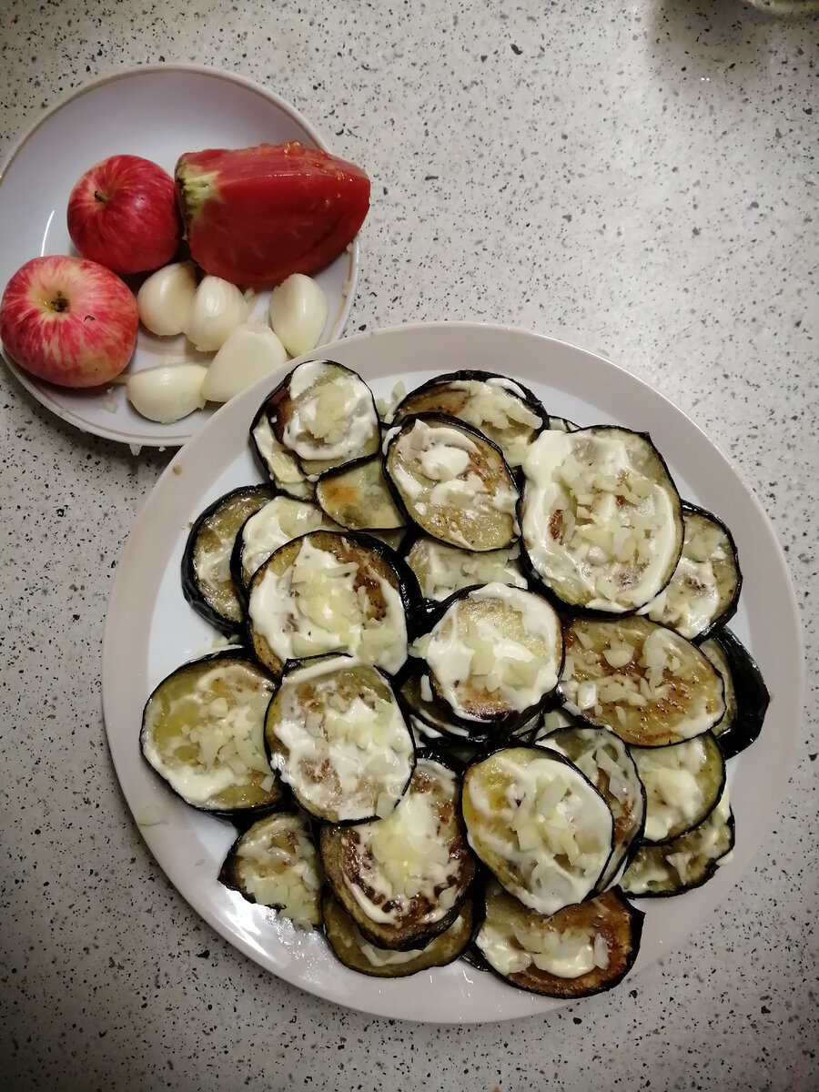 Нам понадобится : Баклажаны - 3 шт. средних Майонез Чеснок по вкусу Мука Подсолнечное масло Соль Способ приготовления Баклажаны нарезать кружочками, посолить, обвалять в муке. Чеснок мелко нарезать. В сковороду налить подсолнечное масло и нагреть. В разогретую сковороду положить нарезанные баклажаны и обжарить до золотистой корочки с двух сторон. Затем выложить жареные баклажаны в тарелку, смазать их майонезом и посыпать сверху чесноком. Чеснока сыпьте по Вашему вкусу, я например, не люблю острое, поэтому 1 головки чеснока хватает на 1 баклажан. Пусть немного остынет. Тогда будет вкуснее. Всем приятного аппетита!