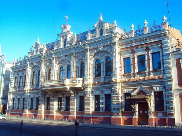 Изящный флюгер в форме морского конька, лепной декор, львиные маски, полуколонны, широкий балкон на каменных кронштейнах – отделка особняка была выполнена с особым вкусом, без дешёвого шика и вульгарности. Внутреннее оформление также было не лишено изыска: мраморная лестница с перилами украшена растительно-цветочным орнаментом, а лепка потолков - цветы, листья, фрукты, - повторяла элементы наружного декора.