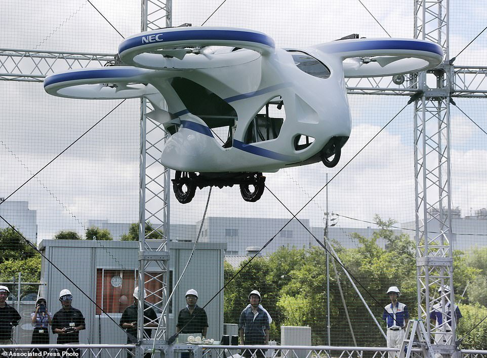 Пока, конечно, это экспериментальный образец от электронной компании NEC. Разработчики планируют уже в следующем году запустить электроаэромобили для перевозки грузов, а в 2030-м, если многолетние испытания пройдут нормально, то и для транспортировки людей. На данном этапе людям продемонстрировали взлет на 3 метра и посадку в клетке. Наверное, человечество пока идет не в самом правильном направлении, если уж максимум, что получилось сделать у японцев - это увеличенный квадрокоптер. #япония