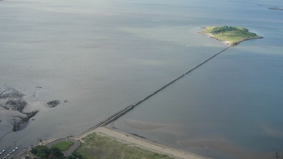 Необитаемый остров Крамонд, доступный только во время отлива, усеян руинами времен Второй мировой войны, а попасть на него можно только через дамбу посреди залива Ферт-оф-Форт. Сама дамба-дорога представляет собой необычное зрелище - она длиннее в несколько раз самого острова и усеяна массивными бетонными зубьями, созданными во время Второй мировой войны. Как раз они-то и препятствовали проходу во время прилива судов и подводных лодок. Ряд одинаковых пилонов создает внушительный, хоть и случайно, образец необычной архитектуры, - верх сломан то здесь, то там, а где пилон вообще упал в волны. Несмотря на то, что на протяжении большей части своей истории остров был пустынным, некоторые жители острова оставили свой след. Предполагают, что остров мог иметь особое значение для доисторических народов, которые проживали вдоль побережья залива Ферт-оф-Форт. Был найден один каменный гроб. «Самым древним свидетельством человеческой деятельности на острове является древний христианский длинный ящи