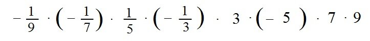 Умножение чисел с разными знаками. Уважаемые мамы и папы, дедушки и бабушки! В статье «Умножение двух отрицательных чисел», от 29-го июля 2022 года был сделан вывод, что при перемножении нечётного числа отрицательных чисел их произведение – отрицательное число, а при перемножении чётного числа – положительное. Предлагаю закрепить этот вывод решением примеров 1064-го номера из 7-го издания учебника по математике для 6-го класса авторов А. Г. Мерзляка, В. Б. Полонского и М. С. Якира под редакцией. В. Е Подольского. Пример 1064 ( 1 ): Решение: Из восьми множителей примера четыре множителя – это отрицательные числа. Следовательно, произведение всего примера – положительное число и для нахождения ответа нам достаточно перемножить модули чисел. Проще говоря, можно про минусы в примере «забыть» и решать его как перемножение положительных чисел. В §38 учебника школьники проходят переместительное и сочетательное свойства рациональных чисел. Переместительное свойство: для любых рациональных чисе