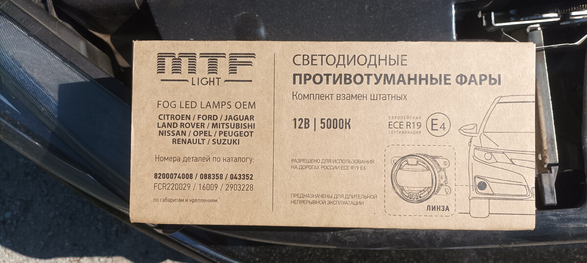 Всем доброго времени суток. Спустя два года эксплуатации противотуманки SAL-MAN стали хуже освещать дорогу, и я задумался об их замене. Долго думал читал разные статьи про то как люди ставили линзы ксеноновые или диодные модули, как в родные противотуманки ставили разные лампы от диодных до ксеноновых, в итоге выбор сузился до двух, это реношные галогены на 50вт. и диодные от MTF отзывы у обоих хорошие, решающим выбором послужило то что MTF сертифицированы и потребляют меньший ток они всего на 10вт против Рено на 50вт. По замене все тоже самое, нужно снять бампер Световой пучок у них отличается от SAL-MAN он тоньше и шире, теневая граница четкая Ну а на SAL-MAN помутнели стекла хотя видимых царапин нет и сухой тряпкой я их не натирал от грязи Посмотрим на сколько хватит MTF работают пока хорошо. Всем добра и ровных дорог!