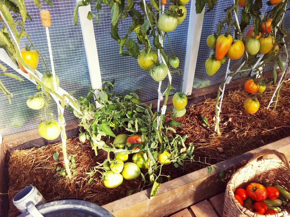 А если бы еще верхние помидорки довыросли? Взвесить не догадалась, приношу урожай на кухню и, не до взвешивания уже :)))