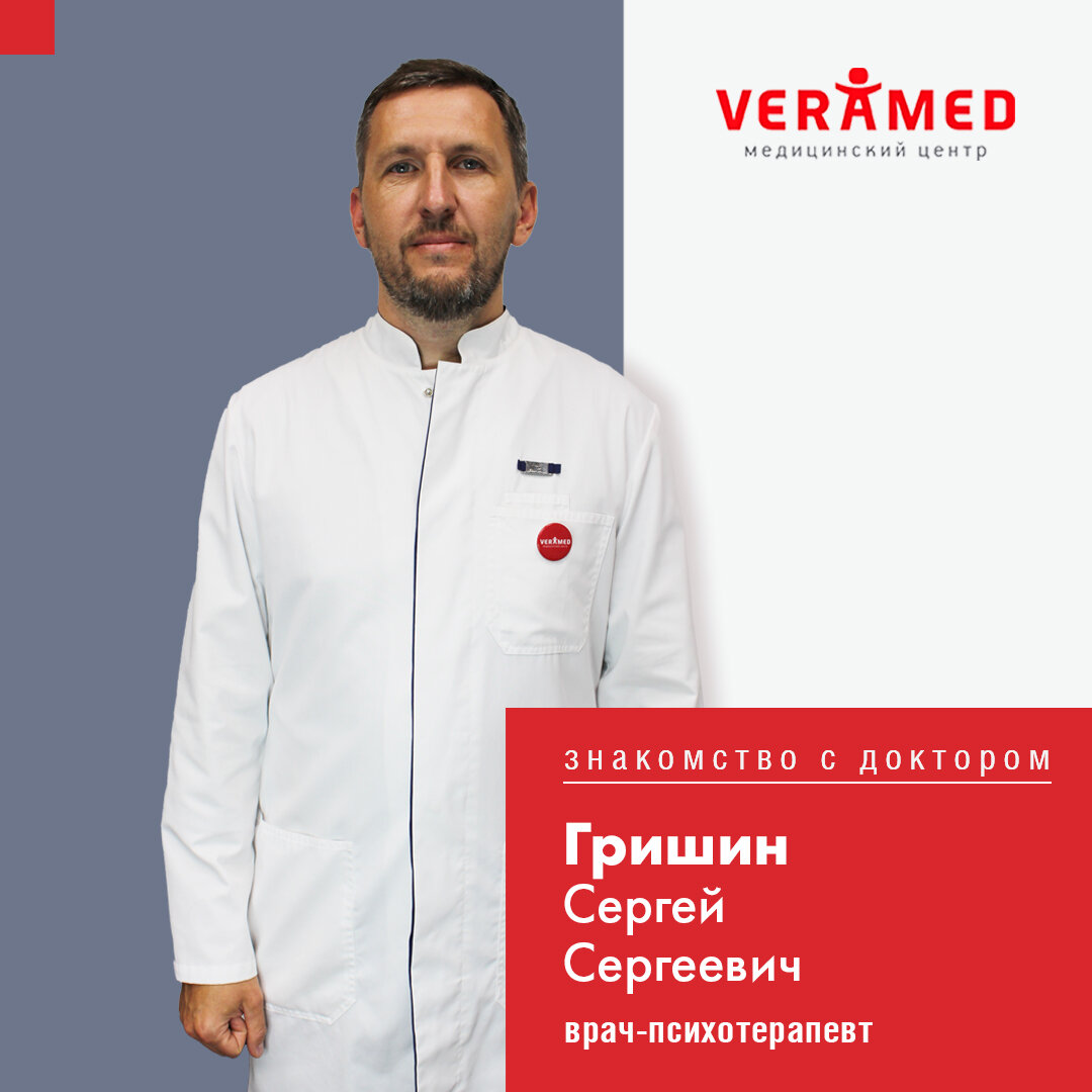 Знакомьтесь! Врач-психотерапевт Сергей Сергеевич Гришин. Ведёт приём взрослых и детей с 14 лет в клинике «ВЕРАМЕД Звенигород». 📚 Образование: