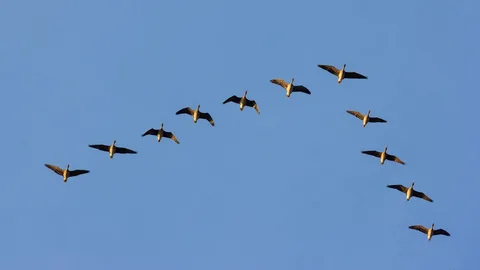 Известно, что в косяк птицы выстраиваются не как попало. Впереди летит вожак – самый сильный из членов стаи, за ним следует тоже довольно сильные птицы, но чем ближе к концам клина, тем слабее, и наиболее слабые птицы замыкают колонну с двух концов. Это тоже позволяет пернатым в буквальном смысле «оседлать» некоторые законы аэродинамики. Взмахи крыльев каждой из птиц порождают воздушную волну в виде восходящего потока. Эта волна «подхватывает» другую птицу, которая летит позади, в результате чего она затрачивает уже меньше усилий для взмаха – а следующая за ней птица получает уже боле мощную воздушную волну. Синхронная работы крыльев всех птиц позволяет связать единой волной всю стаю, причем чем ближе к концам клина, где находятся слабые птицы, тем сильнее волна. Такая организация стаи позволяет пережить перелет всем птицам – в том числе и достаточно слабым. Вывод: Птицы выстраиваются в косяк, для облегчения полета. Труднее всего вожаку, так как именно он, подобно острию стрелы, рассек