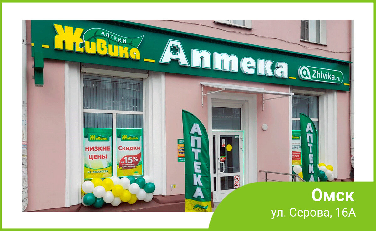 🍃В Омске на ул. Серова, 16А открылась новая аптека Живика. 🍃 Аптека работает без выходных с 8.00 до 22.00. В новой аптеке низкие цены и скидки до 15% более чем на 1000 товаров.🔥 Выбрать лекарства и аптечные товары, и оформить заказ можно в интернет-аптеке. Все заказы собираются в течение часа и хранятся в аптеке 36 часов.