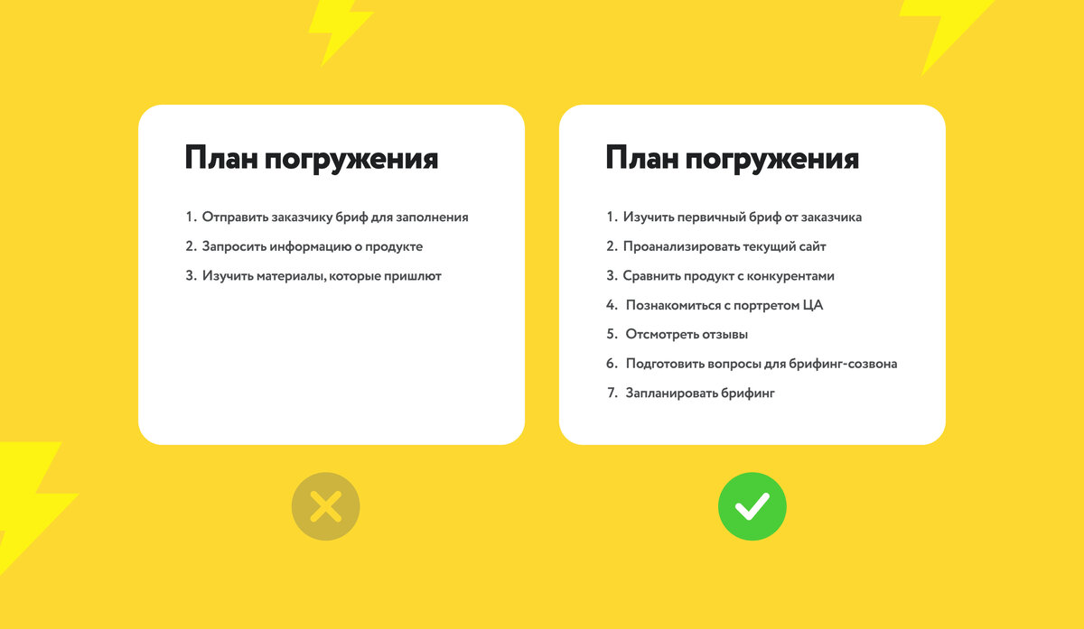 Чтобы решать задачи бизнеса с помощью текста, нужно понимать, какой продукт или услугу он предлагает, какие у него проблемы, кто целевая аудитория, кто конкуренты. Это базовая информация, которая требуется копирайтеру. Добыть её несложно: достаточно предоставить подробно составленный первичный бриф, где заказчик кратко пояснит все вводные данные проекта. Но как бы подробно ни был заполнен бриф, информацию необходимо обсудить голосом на созвоне или встрече. Чем больше уточнений, даже самых очевидных, тем глубже степень погружения. Если складывается ощущение, что завтра копирайтер будет готов работать в вашей сфере, то он достаточно вник в суть проекта.