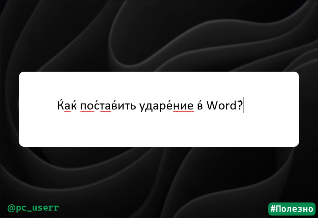 Нередко возникают ситуации, когда в тексте в каком-нибудь сложном слове необходимо поставить ударение над буквой. Для этого нужно: • Поставьте курсор после буквы, на которую хотите поставить ударение. • Зажмите "Alt" и нажмите "769" на цифровом блоке, после отпустите "Alt" Есть другой способ, для этого нажмите "Вставка", "Символ", затем "Другие символы" и найдите символ ударения. Источник #word #ударение #лайфхак