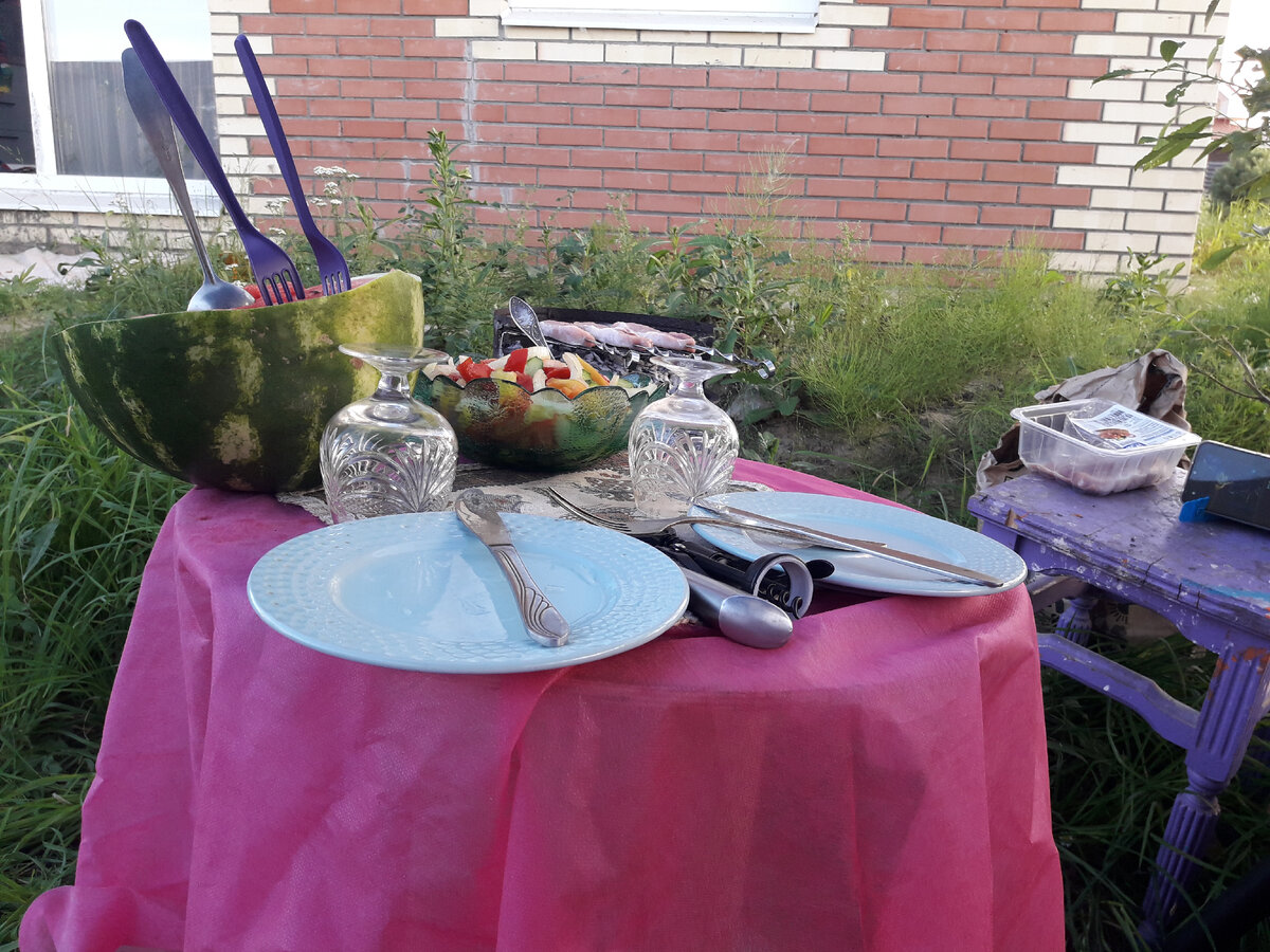Привет, друзья! Продолжаю вам рассказывать про свой проект "Ы". Что это за проект можно прочитать здесь. В выходной нам наконец-то долгожданные стулья привезли, о чем я рассказывала здесь. И здесь. По этому поводу мы решили поужинать на улице возле дома, благо погода позволяла. Никаких особых изысков у нас не было. Мясо на гриле, арбуз и овощной салат с маслом на гарнир. Бабай тоже с нами ужинал и был вполне доволен своим участием в пикнике. Вот такой вкусный ужин в нашей компании получился. Мясо приготовились довольно быстро. Ну а после ужина мы переместились в домик и там уже пили кофе , сидя на новых барных стульях. Вот тут можно про это посмотреть видео. Оглавление: А вы как провели выходные? Пользуетесь хорошей погодой? Спасибо, что зашли на мой канал @leila Ваша 🌷Лейла🌹