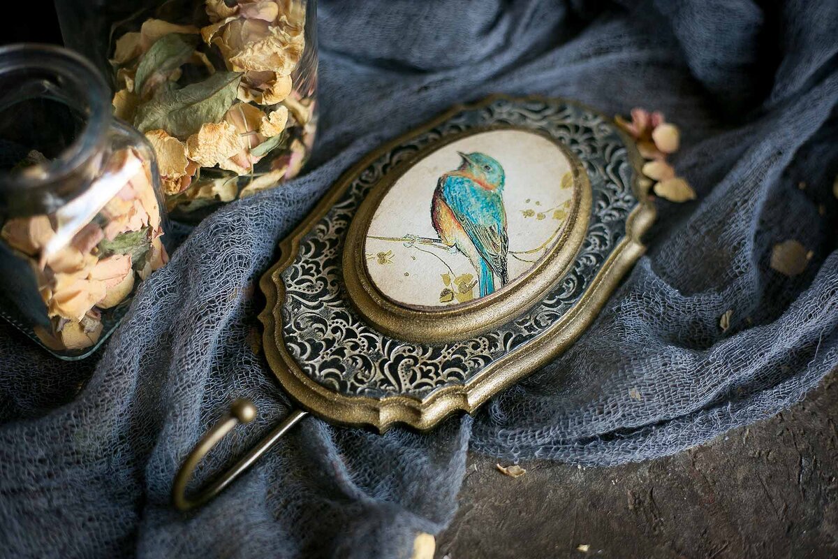 Сегодня хочу показать вам процесс изготовления вот такой вешалки-малышки с одним крючком. Для работы нам понадобится: Обязательно обведите карандашом верхнюю накладку, с этой области нам нужно будет удалить рельеф, чтобы части заготовки хорошо склеились. Положите трафарет по центру, так. чтобы рисунок ложился симметрично и, придерживая его пальцами, нанесите шпатлевку с помощью мастихина. Слой не нужно делать толстым - в толщину трафарета будет достаточно. Не дожидаясь высыхания шпатлевки, мастихином удалите рельеф с обрисованного овала и почистите фаски. Оставьте до полного высыхания или высушите феном. После высыхания ошкурьте поверхность наждачной бумагой средней зернистости и протрите от пыли. Теперь займемся приклеиванием распечатки. Для начала её необходимо сбрызнуть водой и оставить на 15-20 секунд, после этого салфеткой убираем лишнюю воду. Бумага должна быть влажной, но не мокрой. Наносим клей для декупажа на заготовку и переносим распечатку на поверхность. Сверху накрываем ка