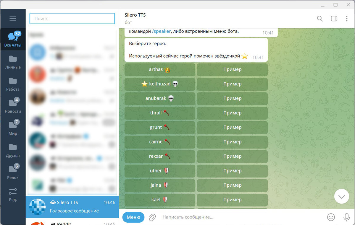 В Telegram стала доступна озвучка сообщений голосами персонажей WarСraft 3
