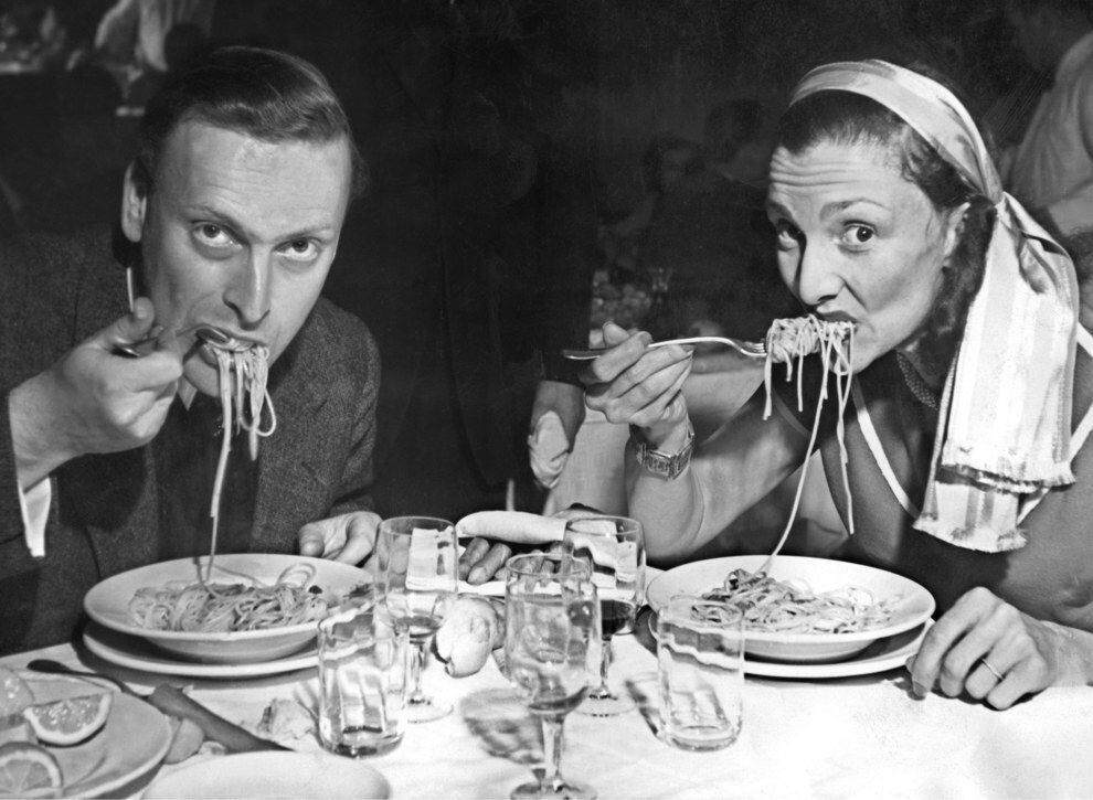 Иногда кажется, что итальянцы уже рождаются с умением идеально наматывать спагетти на вилку. А вот за пределами Италии этот навык у всех напрочь отсутствует, поэтому использование ложки в помощь к вилке поощряется в этикетах многих стран, и позволяет есть спагетти не пачкаясь. На самом деле эта традиция еще несколько поколений назад была широко распространена и в Неаполе, как признак элегантности и утонченности, но сегодня в Италии считается не только ошибкой, но и настоящим святотатством. Согласно итальянскому этикету, вилка и ложка никогда не должны использоваться вместе. Только маленьким детям разрешается нарезать спагетти на мелкие кусочки или есть их ложкой.