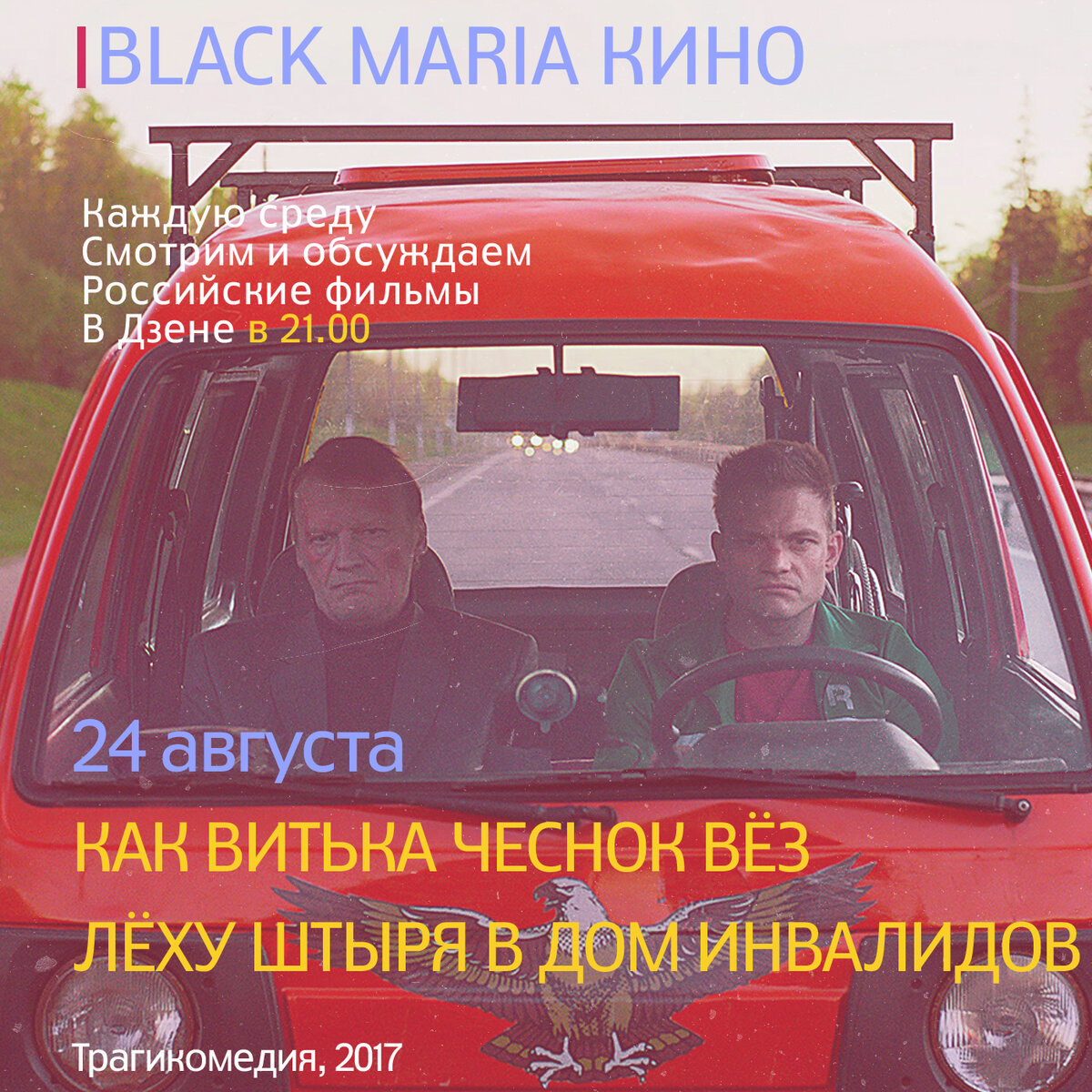 Каждую неделю мы договариваемся о просмотре фильма и возвращаемся на канал "Black Maria Кино" чтобы обсудить увиденное. На этой неделе смотрели российскую трагикомедию "Как Витька Чеснок вез Леху Штыря в дом инвалидов" 2017 г. Это роуд муви о поездке отца и сына. Завязка истории такова: Витька Чеснок - нищий, не особо умный и не имеющий никаких перспектив обыватель. Судьба дарит ему какую-никакую, но перспективу - стать наследником квартиры. Квартира принадлежит его отцу - они друг друга не знают и никаких связей в течении жизни не поддерживали. Отец судя по всему скоро скончается, поэтому его стоит отвезти в дом инвалидов и заполучить квартиру. Миссия выполнима и Витька Чеснок за нее берется. Ну а потом история развивается вовсе не так, как можно ожидать. "Как Витька Чеснок вез Леху Штыря в дом инвалидов" - это дебют в полнометражном кино Александра Ханта. После этой ленты от снял еще "Карантин" 2020 г. и "Межсезонье" 2021 г., но лучшим его фильмом пока остается дебют. Сценарий фильма