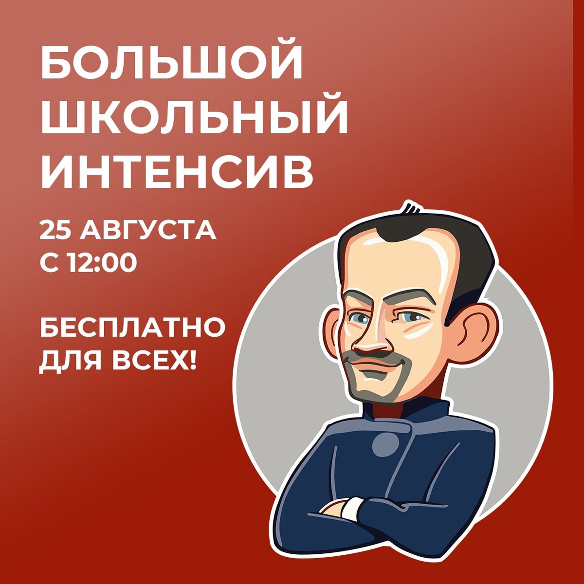 Бесплатно 25 августа с 12.00 до 20.00 (мск) мы проводим в прямом эфире Большой Школьный Интенсив по ссылке https://vk.cc/cg0rAu