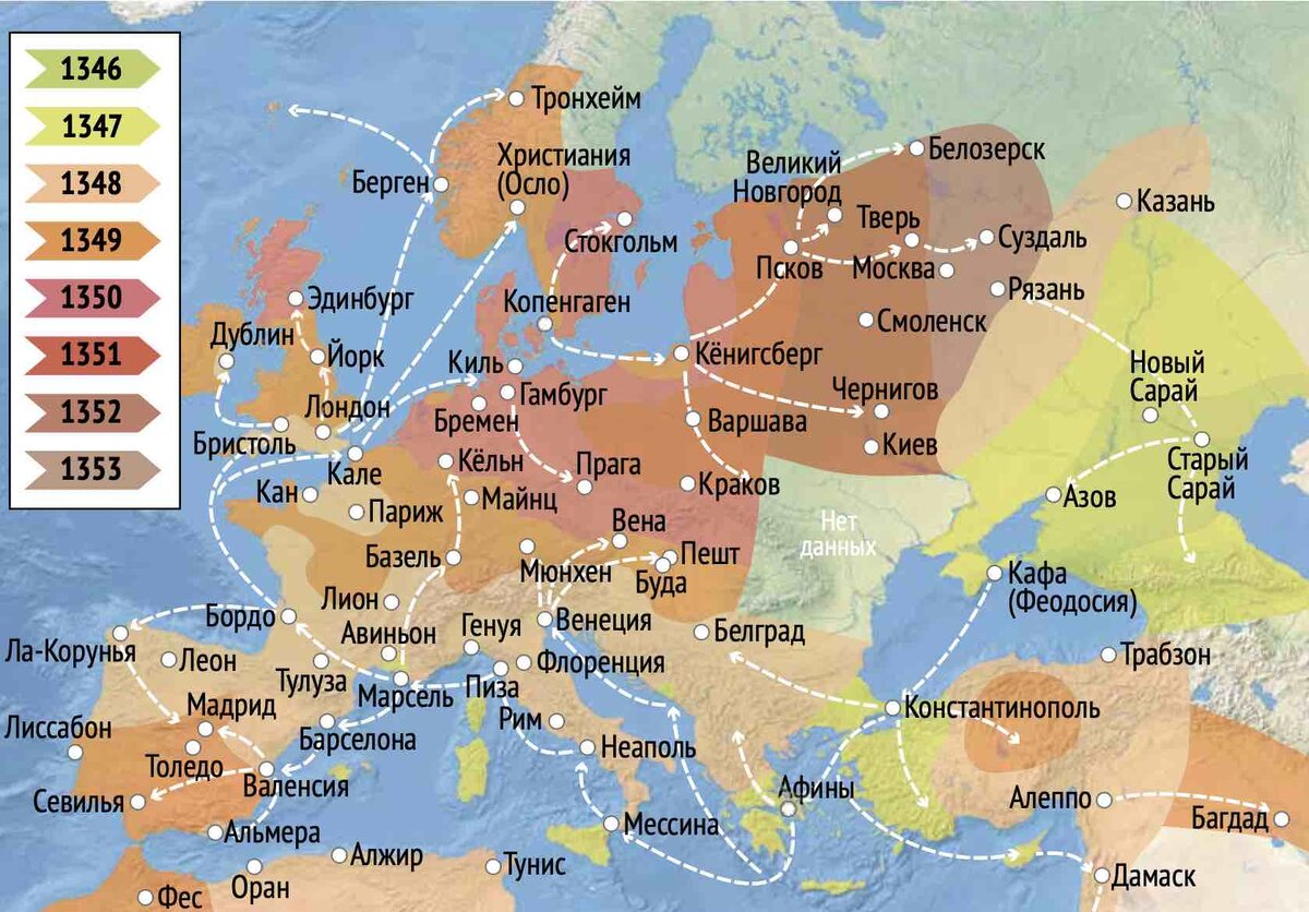 Пути распространения чумы. («Дилетант»)