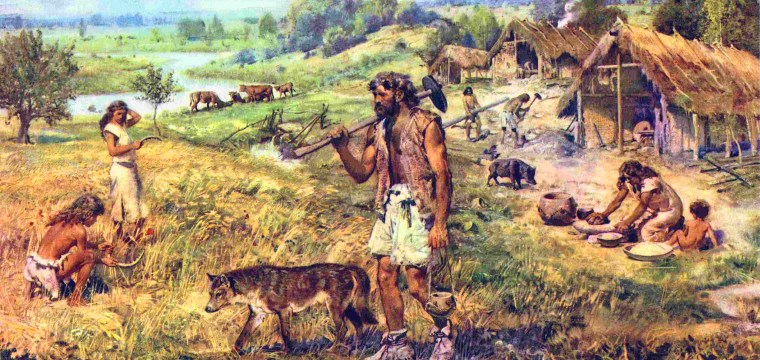 1. Неолитическая революция (10 тысяч лет до нашей эры — 2 тысячи до нашей эры) Термин «неолитическая революция» ввёл в 1949 английский археолог Гордон Чайлд. Главным её содержанием Чайлд назвал переход от присваивающего хозяйства (охота, собирательство, рыболовство) к производящему хозяйству (земледелие и скотоводство). По данным археологии, одомашнивание животных и растений происходило в разное время независимо в 7-8 регионах. Самым ранним центром неолитической революции считается Ближний Восток, где одомашнивание началось не позднее, чем 10 тысяч лет до нашей эры. 2. Создание Средиземноморской цивилизации (4 тысячи лет до нашей эры) Средиземноморский регион был очагом появления первых цивилизаций. Появление Шумерской цивилизации в Месопотамии относят к 4-му тысячелетию до нашей эры. В том же 4-м тысячелетии до нашей эры египетские фараоны объединили земли в долине Нила, и их цивилизация быстро расширилась через Плодородный полумесяц на восточное побережье Средиземного моря и далее п
