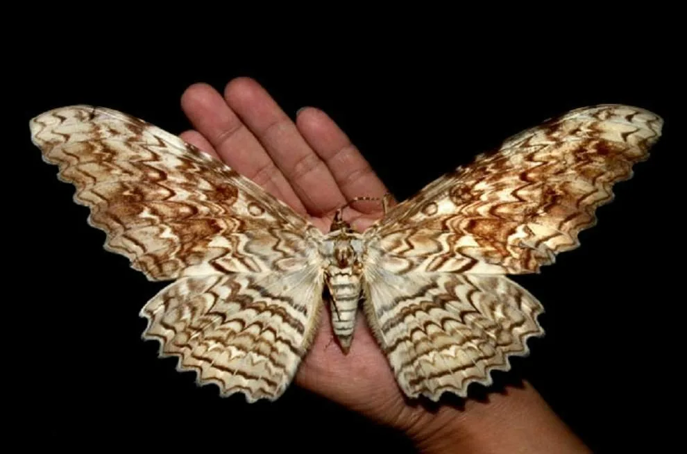 На фото Тизания агриппина - самая большая бабочка в мире. Её размах крыльев от 25 до 31 см. Чтобы стать таким вертолётом бабочки проходят намного больше стадий развития, чем обычные. Как из яйца вырастает великан Разберём тайну гигантских бабочек на примере Павлиноглазки Атлас. 1. Яйцо, из которого вылупится гусеница, не больше рисового зерна. Но на самом деле размер яйца уже больше, чем у маленьких бабочек. 2. А вот и вылупилась гусеница. Сейчас она совсем маленькая, чуть больше яйца . Её главная задача - набрать массу. Путь к цели займёт 6 недель. 3. Гусеница сбрасывает свою кожу, чтобы продолжить расти. Её внешний вид меняется. Шипы-отростки растут, они содержат едкую пыльцу, которая отпугивает хищников. 4. Гусеница линяет 4 раза и вырастает до 10 см. Размер практически мясной колбаски, настоящая сарделька в дикой природе. А так выглядит гусеница другой бабочки - павлиний глаз. Длина 12 см. 5. Гусеница плетёт шёлковый ккон и за месяц в стадии куколки строение тела полностью меняется