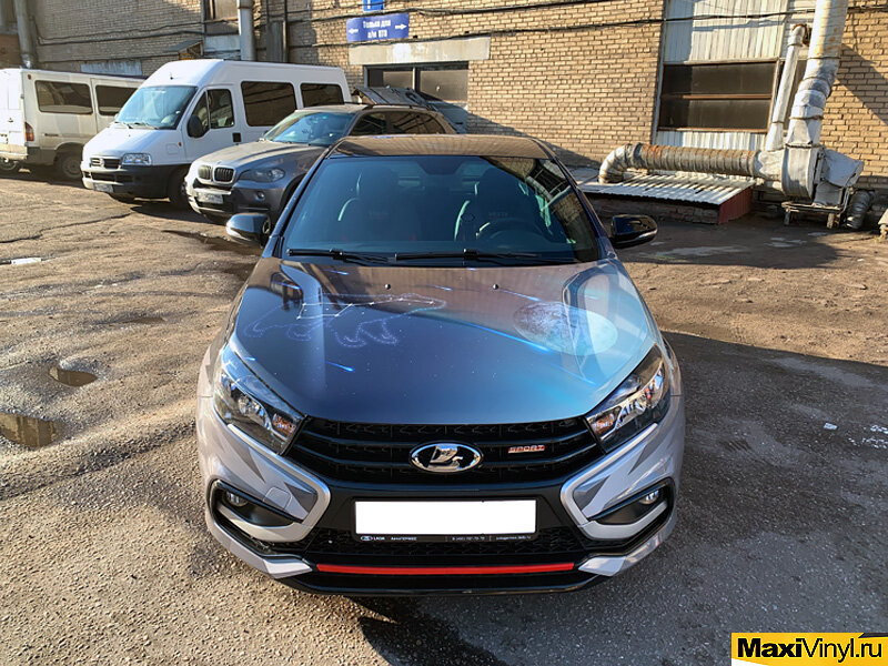 К нам обратился владелец автомобиля Лада Веста с целью придания своей машине нотки эксклюзивности за счет полной оклейки. Хотя, стоит отдельно отметить, что данная машина была и так уже эксклюзивна сама по себе, так как ее двигатель турбировали, причем сделано это специалистами дилерского центра Lada. Нам была поставлена необычная задача по винилографии, мы бы это назвали так – надо было совместить несовместимое. Не будем скрывать тот факт, что согласование финального макета винилографии заняло очень длительный промежуток времени, т.к. необходимо было внести огромное количество правок. Что касается использования материала, то в данном случае нами была задействована одна из самых дорогих пленок под печать – Orajet 3951. На наш скромный взгляд, получилась очень специфичная графика, но для нас самое важное – это то, что клиент остался очень доволен. Название материала: Oracal Orajet 3951