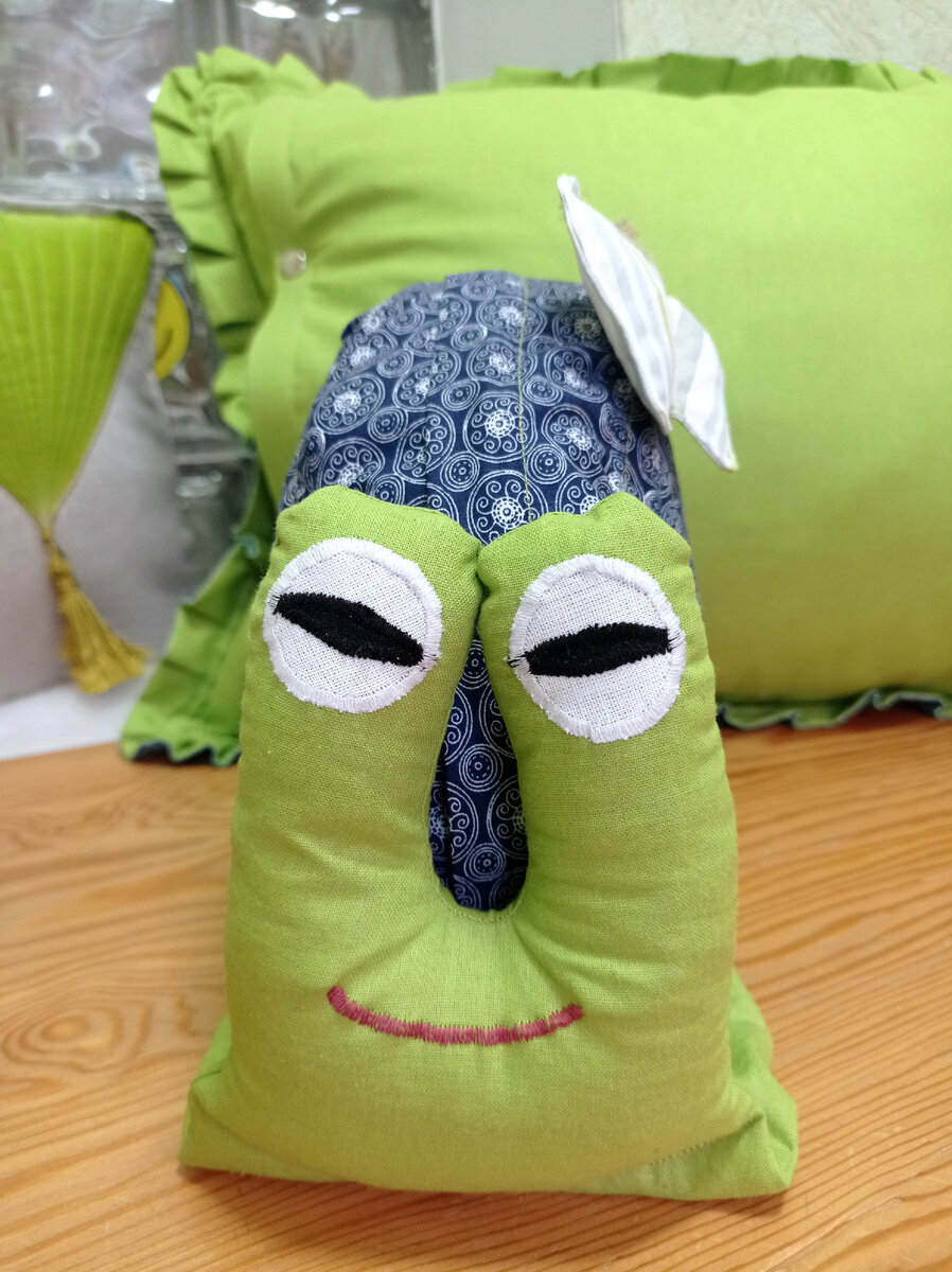 Нет. Минуточку. Конечно, я, как все, листаю страницы интернет-площадок с изображениями многочисленных и всевозможных рукодельных достижений человечества. И меня это коллективное творчество невероятно вдохновляет! Какие мы все-таки выдумщики - люди! Прям молодцы, прям тепло на душе становится, ей богу. Ну, а дальше включается моя собственная фантазия (она у меня тоже есть оказывается) и.... карандашик с блокнотом в руки и давай рисовать/стирать/переделывать свои задумки. Вот так я сочиняю лоскутные покрывала. Увидела рисунок в сети - сначала разгадываю из каких деталей он состоит, а потом придумываю свой вариант покрывала. А игрушки... Бывает даже, что и повторить не смогу, потому что кроила сразу на ткани. Эта "улитка хранительница пижам" как раз так и сделана. Чтобы повторить, придется ворошить воспоминания или вдохновляться заново. Бумажной выкройки не осталось. Рисовать забавные мордочки весело. А пытаться воплотить их в виде текстильных мягких игрушек - еще и интересно. Творчество