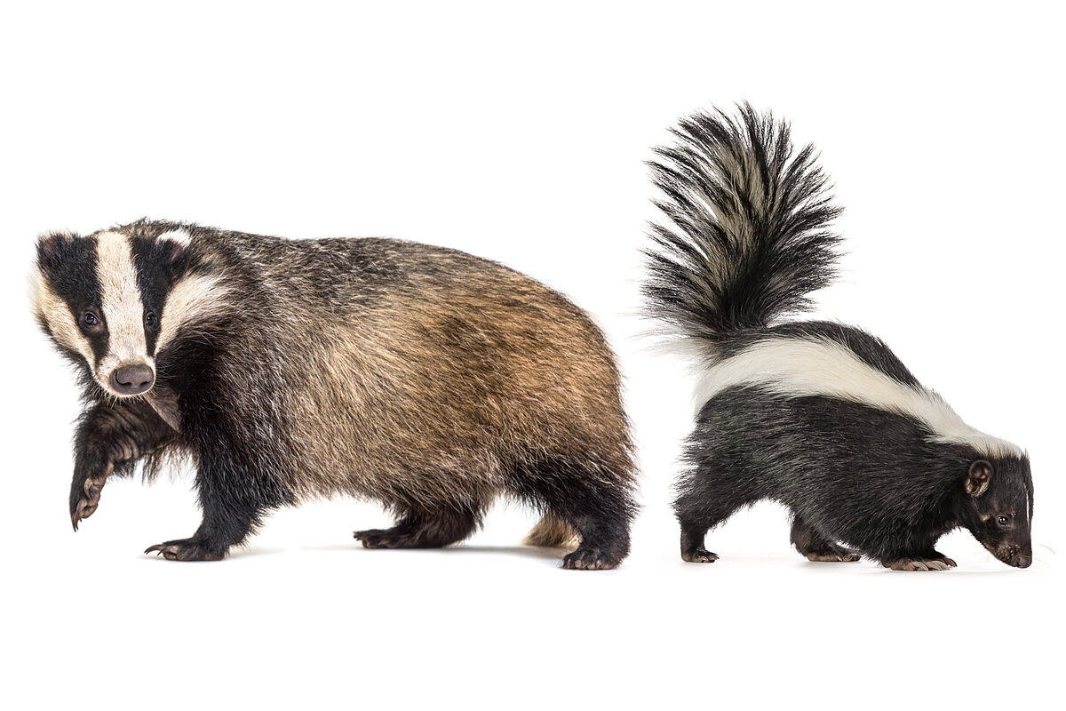 На белой «физиономии» барсука есть две линии чёрного цвета. У скунса полосок больше: одна малая — на морде, две большие — на спине. По габаритам и сравнивать нечего. Скунс с его максимумом в 5 кг сильно уступает оппоненту. Барсук весит до 24 кг, а перед спячкой — до 34 кг