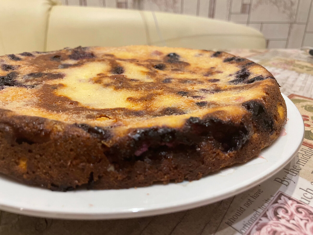 Не так давно делилась рецептом творожной запеканки, а здесь решила попробовать другой рецепт, добавив собранную в августе чернику. Буду честна, черника оказалась лишней из-за большого количества сока в ней, но делюсь этим рецептом потому, что сама по себе запеканка вышла ещё вкуснее предыдущей. Просто лучше чернику не добавлять, по-моему😅 Либо нужно как-то умудриться, чтобы творожная масса внутри приготовилась, учитывая выделение сока черники. Понадобится: Смешиваем яйца с сахаром и растопленным сливочным маслом. Добавляем творог, перемешиваем тщательно вилкой или миксером. Добавляем манную крупу, перемешиваем, оставляем на минут 15. И по сути масса для идеальной запеканки готова, но я добавила чернику. Читала, что можно использовать любую начинку, и сухофрукты, и варенье. Дно формы смазываем маслом, присыпаем манной крупой, выкладываем творожную массу. Выпекаем при 180 градусах 45 минут. У меня из-за сочной черники это заняло больше часа 🙂 Буду готовить творожную запеканку им