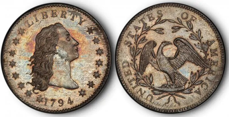 Здравствуйте, дорогие читатели. Сегодня мы поговорим о самой дорогой монете в мире, поехали! Но перед этим я попрошу вас подписаться и поставить лайк, так вы не будете пропускать новые статьи от меня и поможете мне в продвижении канала, заранее спасибо. Речь пойдёт о монете 1794 года, номиналом 1 доллар. Этот доллар в мире нумизматики прозвали как "Распущенные волосы". Сделана эта монета из серебра 900 пробы, не пугайтесь её внешнего вида, это не грязь, а патина (Слой формирующийся на монете за многие многие года). Все эти монеты были произведены вручную, без использования какой-либо специальной техники, из-за этого качество монеты оставляет желать лучшего. Как никак год чеканки 1794-1795. По примерным данным всего таких монет было произведено около 1800 и сразу на следующий день после чеканки первая монета отправилась в руки самому Джорджу Вашингтону! Также для популяризации долларов Директор монетного двора Дэвид Риттенхауз выменивал монеты этой партии на иностранные монеты. А 20