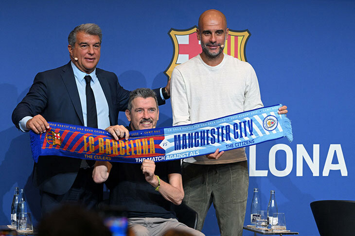 Мне нравится, что я помогаю собирать деньги на такую благую цель – борьбу с БАС. Еще мы привлечем широкое внимание к заболеванию, это тоже важно. Выполним сразу две задачи, этого я и хотел», – сказал Унсуэ в интервью изданию Sport. Способы вылечиться от БАС пока не найдены, но исследования ведутся. Собственно, на них и пойдут собранные от матча средства. Поездка в Каталонию – еще один тренировочный лагерь для «Сити» Унсуэ съездил и в гости к Гвардиоле – «Манчестер Сити» сейчас тренируется на базе «Жироны». Хуан Карлос знаком и с другими испанцами из английского клуба – в «Барселоне» он пересекался с Чики Бегиристайном и Мануэлем Эстиарте. Тут все логично, команда принадлежит City Group, так что использовать благотворительную поездку в Каталонию можно и как тренировочный лагерь в солнечной Испании.