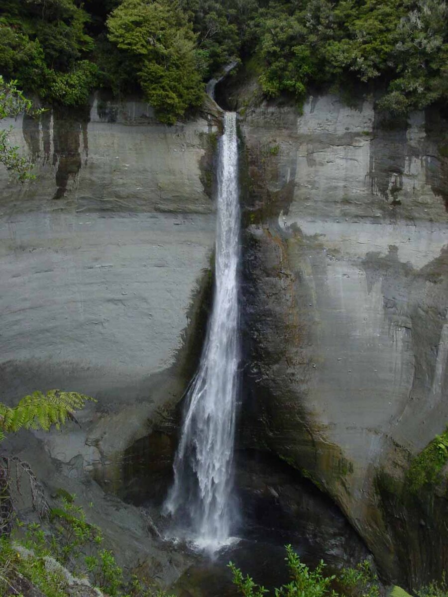 Этот водопад высотой 153 м падает с такой высоты, что мы даже заметили его с равнины Вайкато, когда ехали между Матаматой и местом маршрута.