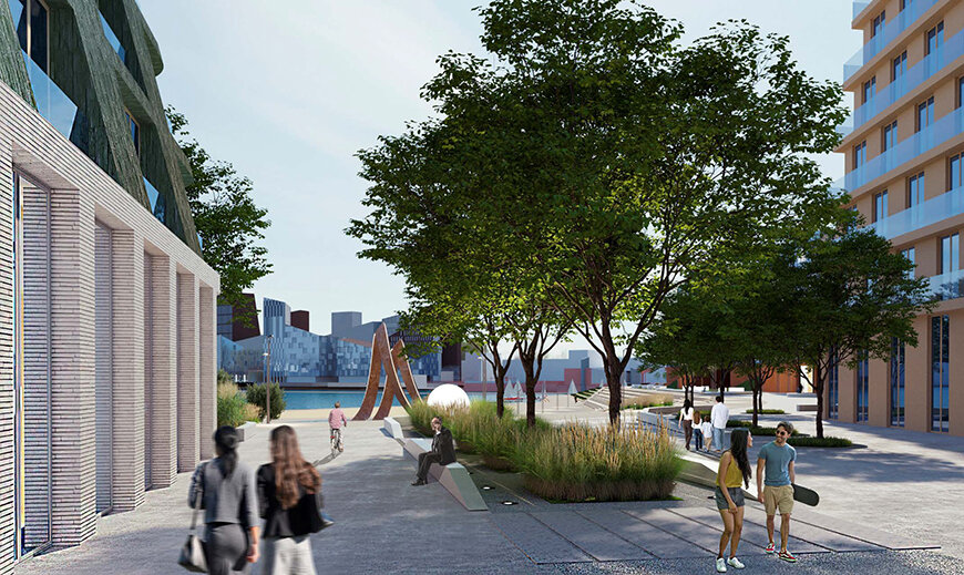 Территория комплексного развития включает в себя 72 гектара земли, из которых 30 гектаров – парки, скверы и другие общественные пространства. Кроме того, планируется создание 12-километровой набережной с возможностью стоянки и сервисы для маломерных судов, бульвары и внутриквартальные площади. На территории будут сохранены артефакты и объекты, напоминающие об истории этого места, а существующие старые башенные краны по периметру береговой линии и корабли в гавани будут переоборудованы под музеи, кафе и другие общественные функции.