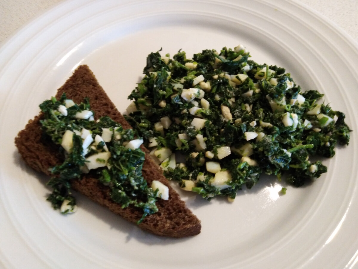 Привет, друзья! Меня зовут Андрей и на этом канале я говорю о рецептах пусть не всегда абсолютно полезных, но уж точно не вредных. Есть вообще не вредно! Пока лето, замолвлю слово за крапиву. Не собираюсь талдычить о её пользе. Просто, не так давно наткнулся на несколько старинных рецептов с крапивой. Всякие, там, щи, квашеная-соленья и разные пирожки меня не тронули, а вот крошево крапивы с яйцом захотелось приготовить, пока на дворе ещё лето и крапиву ещё можно найти. В общем, решил съесть крапиву, пока она есть. И пусть "молодая" сейчас уже не молода крошево получилось довольно интересным на вкус. Вкус старины. Делается крошево так. 1. Крапиву обдать кипятком (чтобы убрать жгучесть), и промыть холодной водой. 2. Оторвать листья от стебля. С молодой крапивой проделывать это не нужно - стебель у неё ещё мягкий и его тоже можно использовать. 3. Листья покрошить и добавить мелко резанные варёные яйца. Заправить нерафинированным подсолнечным маслом, аромат подсолнуха здесь на руку.