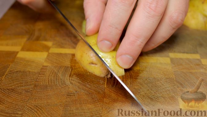 В этом рецепте я покажу, как приготовить вкусный картофель по-деревенски в духовке! Если вы сделаете всё по инструкции, то в итоге у вас получатся дольки ароматного картофеля, мягкие внутри и с хрустящей корочкой снаружи. Это очень вкусно! Обязательно попробуйте! Продукты Картофель - 1 кг Паприка молотая - 2 ч. л. Куркума – 0,5 ч. л. Чеснок гранулированный - 2 ч. л. Масло растительное - 1-2 ст. л. Перец черный молотый Соль Пошаговый фото рецепт 1) Картофель хорошо промываем под проточной водой. У меня картофель молодой, так что я буду готовить его прямо в кожуре. Ставим кастрюлю с водой на плиту и доводим её до кипения. Пока вода закипает, давайте займёмся нарезкой картофеля. Каждый клубень необходимо разрезать примерно на 8 равных частей. 2) Дольки картофеля помещаем в кипящую воду. Ждём, пока она снова закипит. Варим картофель 4 минуты.