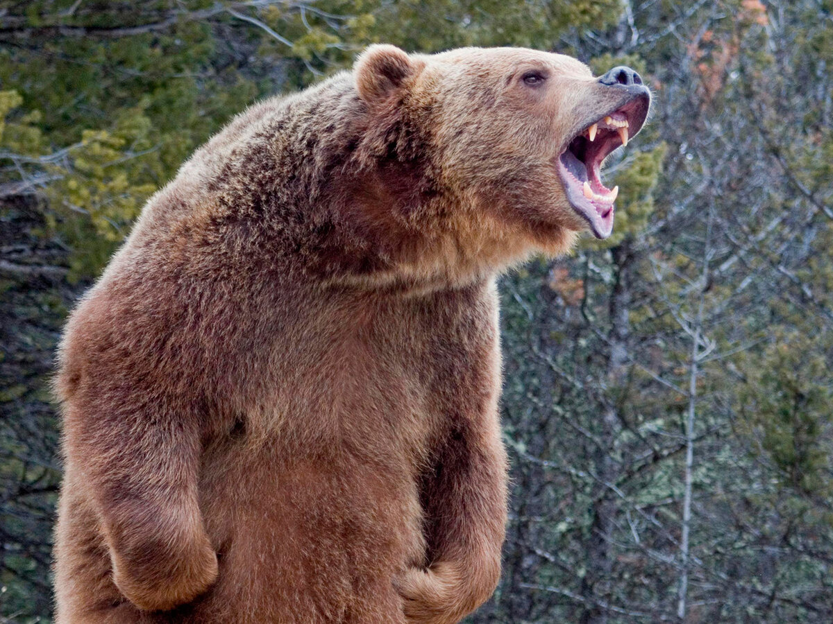 ГРИЗЛИ Настоящее чудовище, обитающее на территории Америки. А точнее, на северо-западе Вашингтона и в Айдахо. Едва ли встреча с таким гигантом пройдет спокойно и безопасно. Для человека, разумеется, ибо гризли – существа бесстрашные. Животное предпочитает мясную пищу. Гризли охотятся на лосей, оленей, могут съесть барана, если оный попадется в их лапы. Хищник ест рыбу, яйца птиц, из растительной пищи в рационе присутствуют кедровые орехи, ягоды. Встретившись с человеком, медведь атакует в 9 из 10 случаев. Интересно, что представителей вида совершенно не смущает оружие. В Америке бытует мнение: остановить медведя может только взгляд «глаза в глаза». Якобы, хищник чувствует смелых людей и предпочитает не связываться с оными. Конечно, проверять данную гипотезу очень чревато. ГУБАЧ ИЛИ МЕДВЕДЬ-ЛЕНИВЕЦ Представители вида ведут ночной образ жизни. Питаются, в основном, муравьями и термитами. Насекомые – не единственный источник питания, мишки любят соты, когда удается, съедают яйца и