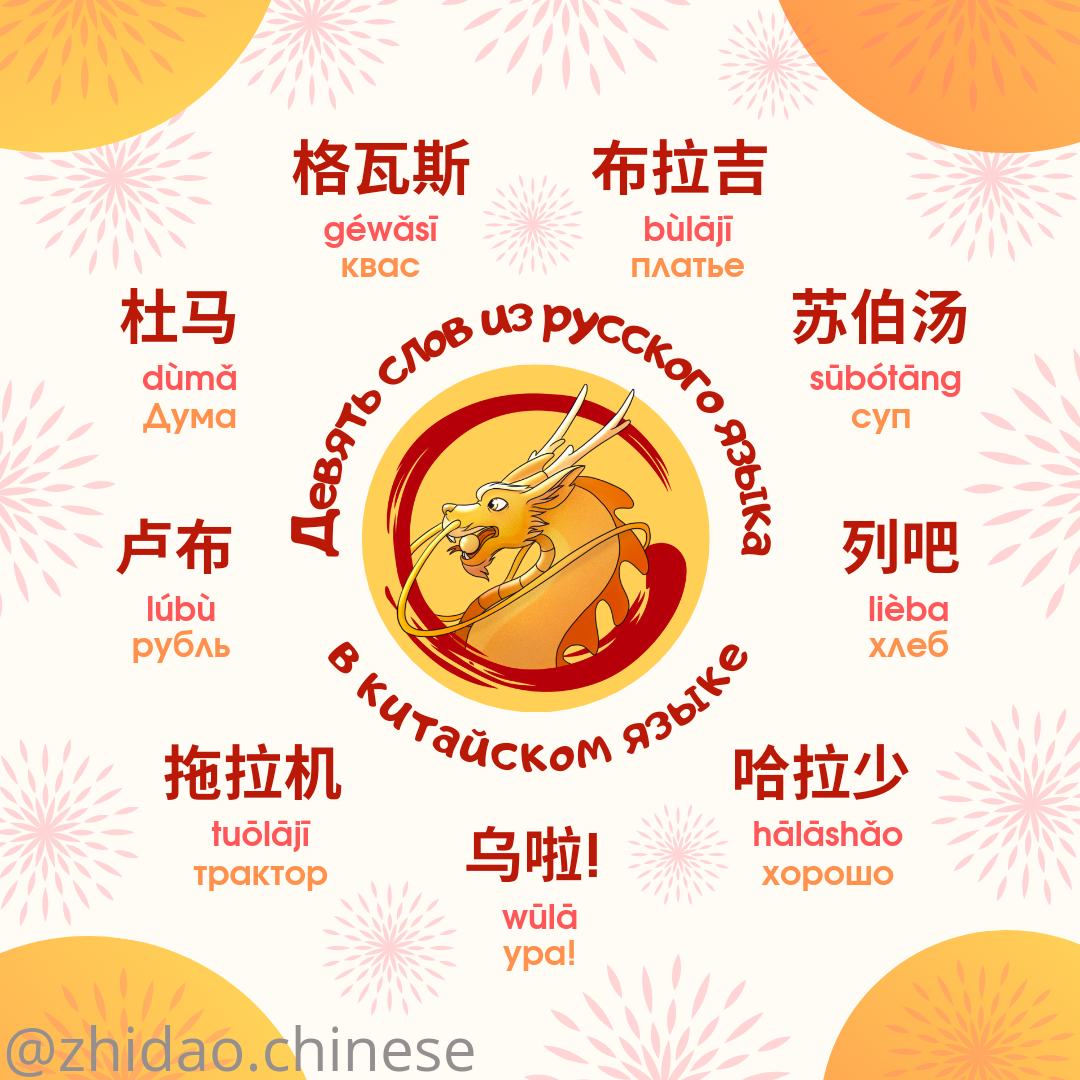 #zhidao_способы_сказать ? Сегодня делимся с вами девятью словами китайского языка, которые пришли в него из русского! Хотя они и не так распространены, но встречаются, особенно на севере Китая 👌 1️⃣ 格瓦斯 géwǎsī квас 2️⃣ 布拉吉 bùlājī платье 3️⃣ 苏伯汤 sūbótāng суп 4️⃣ 列吧 lièba хлеб 5️⃣ 哈拉少 hālāshǎo хорошо 6️⃣ 乌啦! wūlā ура! 7️⃣ 拖拉机 tuōlājī трактор 8️⃣ 卢布 lúbù рубль 9️⃣ 杜马 dùmǎ Дума (орган государственной власти) 📝 Ссылка на карточки Quizlet для изучения новых слов: https://quizlet.com/_burjbo?x=1qqt&i=2r5snr ❗В Quizlet вы можете послушать произношение всех слов! Для этого нажмите на значок микрофона 🔊 📚 Хотите, чтобы Вы или Ваш ребенок заговорили на китайском? Напишите нам для записи на групповые / индивидуальные занятия! 🎓 #china #chinese #школакитайского #китайский #москва #язык #китайскиймосква #учукитайский