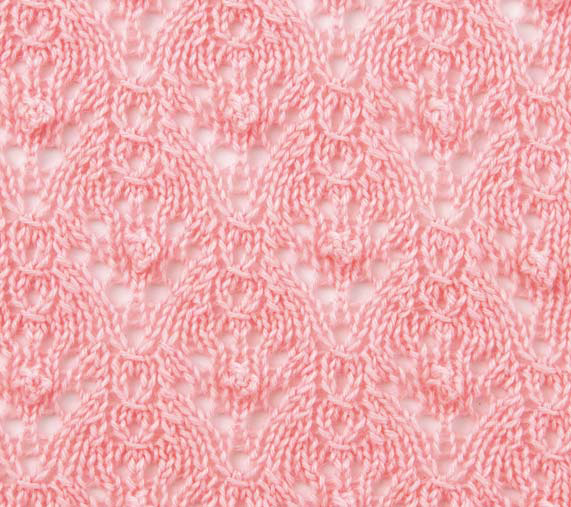 Узор в копилку Один раппорт — 12 петель * 24 ряда (края полотна рекомендуется оформлять платочной вязкой) «Обхваченные кольца с накидом влево» «Из одной петли 3»