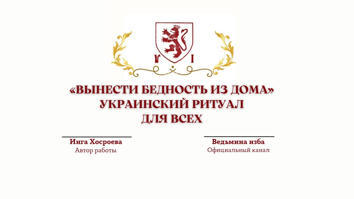 «ВЫНЕСТИ БЕДНОСТЬ ИЗ ДОМА» УКРАИНСКИЙ РИТУАЛ.ДЛЯ ВСЕХ.Автор Инга Хосроева.ВЕДЬМИНА ИЗБА