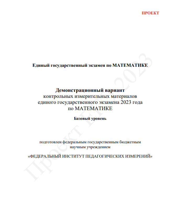 ДЕМОВЕРСИЯ ЕГЭ-2023 ПО МАТЕМАТИКЕ БАЗОВЫЙ УРОВЕНЬ ОТ ФИПИ
