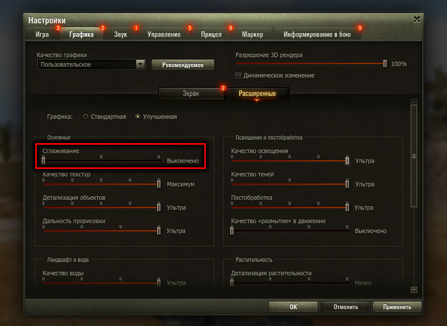 Правильная настройка игры - важная составляющая для стабильного хорошего результата в боях. И, казалось бы, что всё нужно выкручивать на максимум, чтобы картинка была как можно четче, но не всегда это правильно. Некоторые пункты прибавляют в графике, но отнимают в результате. Корбен - довольно известный и неплохой игрок в танки, как-то выпустил гайд по "настройкам для нагиба". И там он жестко раскритиковал пункт
