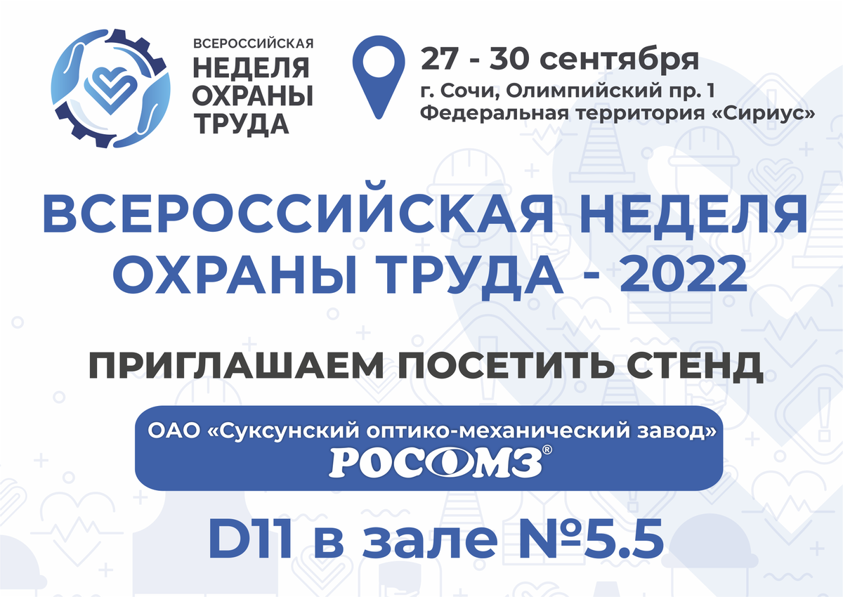 ОАО «Суксунский оптико-механический завод» – постоянный участник Всероссийской недели охраны труда (ВНОТ) в городе Сочи. В 2022 году выставка пройдет с 27 по 30 сентября. Традиционной площадкой проведения станет Парк науки и искусства «Сириус». Приглашаем посетить стенд РОСОМЗ® - D11 в зале № 5.5. Мы с большим удовольствием представим Вашему вниманию новейшие российские разработки в области охраны труда и промышленной безопасности - современные, многофункциональные средства индивидуальной защиты торговой марки РОСОМЗ®, среди которых: 🔵 защитные очки открытого и закрытого типа - широкий выбор моделей от классического до спортивного дизайна; 🔵 современные модели наушников противошумных для различных условий труда; 🔵 система комплексной защиты на базе каски СОМЗ-80 Абсолют Престиж с уникальным оптически прозрачным козырьком ВИЗОР; 🔵 средства индивидуальной защиты для проведения сварочных работ; 🔵 СИЗОД с принудительной подачей очищенного воздуха;