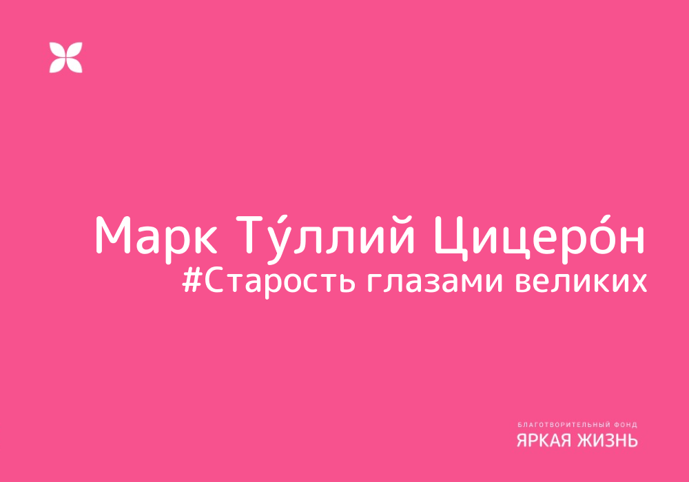 Более 2000 лет назад, римский государственный и политический деятель — Марк Ту́ллий Цицеро́н написал философский трактат “О старости. О дружбе. Об обязанностях.”. Многое с того времени изменилось, даже понятие старость стало иным. Ныне возраст, в котором люди становятся “старыми”, гораздо больше, чем во времена Римской империи. Но актуальность мыслей изложенных Цицероном в 45 году до нашей эры не изменилась. В диалоге «О старости» он показал старость в окружении молодежи, доказав, что старость – вовсе не возраст бессилия и увядания, а возраст руководства, стратегического мышления и уверенного знания вещей, не смущаемого ни юношеской неуверенностью, ни порой поверхностным взглядом на вещи в зрелости. Говорят, что старики слабы? Но именно в старости они не совершают лишних движений и принимают поэтому самые основательные и убедительные для всех решения. Говорят, что старики забывчивы? Но ведь в старости они подводят итоги прочитанному и прожитому, разгадывают все жизненные загадки, и п
