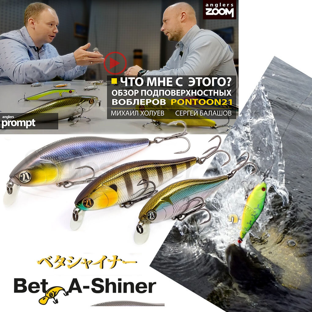 Серия Bet-A-Shiner – представители особого класса подповерхностных воблеров с рисунком игры swimming, которое является наиболее естественным для рыбной «мелкоты», привычной «еды» для хищников. Крайне уловистое семейство Bet-A включает все три вида «узнаваемых» силуэтов, и шеды, и минноу и переходный между ними, называемый «шайнер», имеющий черты и тех, и других (🎥порекомендуем фильм @anglerszoom, где есть масса подробностей: «Что мне с этого? Обор подповерхностных воблеров»). 👉 Собственная игра Bet-A-Shiner (как и знаменитых Bet-A-Shad) столь привлекательна, что их смело можно считать лучшими воблерами для равномерной проводки из всех существующих: они не вибрируют, как крэнки или вибы, не чрезмерно упористы, устойчивы и заметны с предельно дальних расстояний. 🎣 Забрасывай и проводи с нужной скоростью, они отлично работают при любом её значении. Уход корпуса вправо и его широкий наклон в ту же сторону и затем в противоположную на следующей стадии проводки энергичен и визуально акцен