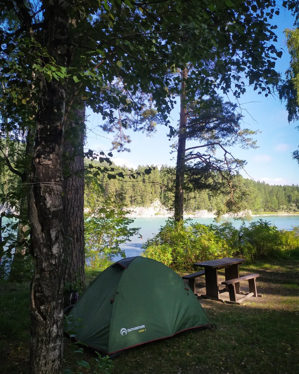 Спал сегодня долго, не потому что лил дождь, а потому что так хотелось. Утро напротив выдалось ясным, даже летним. Через кроны берёз и сосен на лужайку пятнами падал солнечный свет. Кролики уже сновали повсюду, жевались, как-то неуклюже задирали друг друга. Всё таки невозможно себе представить кролика несущегося, как заяц. Какие похожие и какие разные эти ушастые животные. Батареи полностью зарядились, значит у меня будет возможность поснимать всё что захочу. Собрал палатку, рассовал вещи по сумкам, в очередной раз удивляясь как много всего помещается на мой шоссейный велосипед. Дорога какое-то время вплотную держалась у Катуни, зелёные жалюзи временами расходились и открывали бирюзовое, каменистое русло. Катунь стремительная, местами грохочет разбиваясь о пороги на десятки проток, местами несётся одним широким волгующимся потоком. Через пару десятков километров дорога по мосту перекинулась на левый берег и ушла в другую долину. Разошлись. Где-то много дальше, если я не ошибаю
