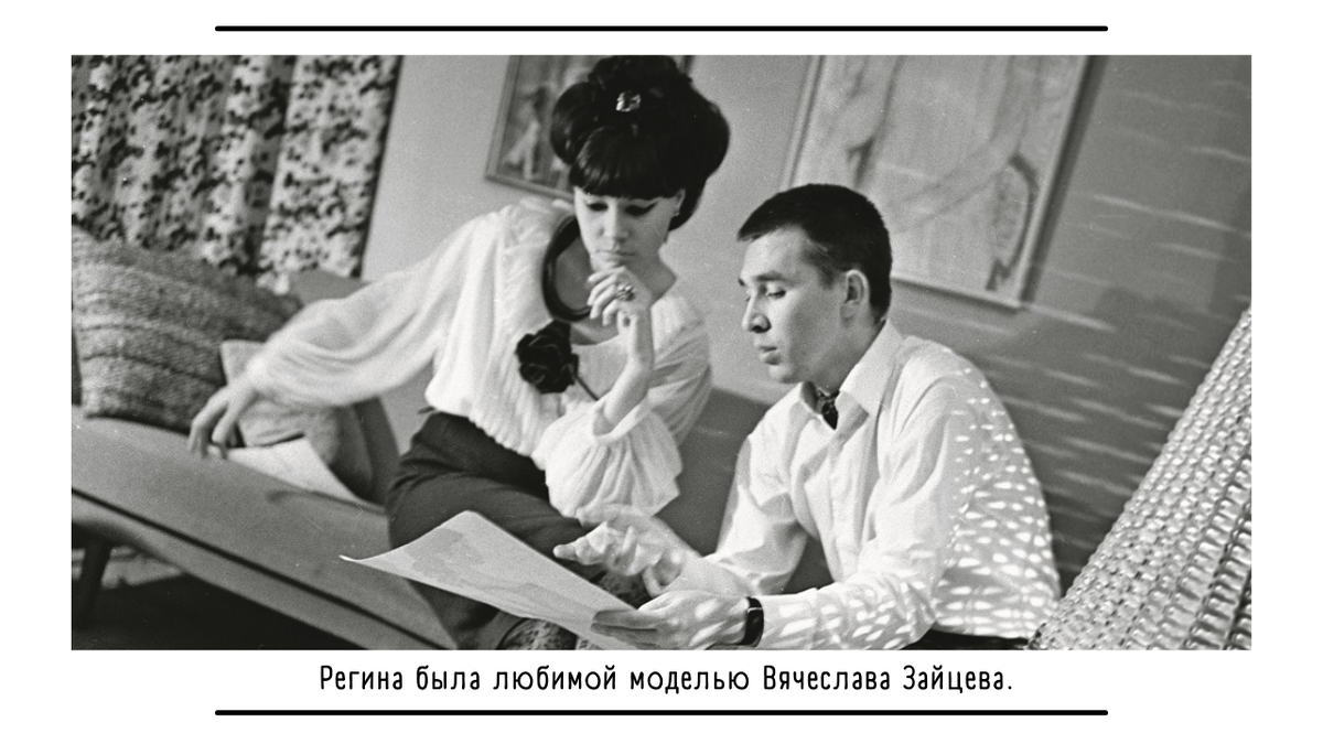 Регину Збарскую называли "самым красивым оружием КГБ." Происхождение её туманно, биография до сих пор вызывает споры. Но как бы то ни было, во времена Хрущева, она была самой известной манекенщицей. Причем, со знанием иностранных языков, что позволяло ей свободно общаться на выездных сессиях дома Модели. Её называли русской Софи Лорен, ей поклонялись, любовались. Она была любимой моделью Славы Зайцева.
