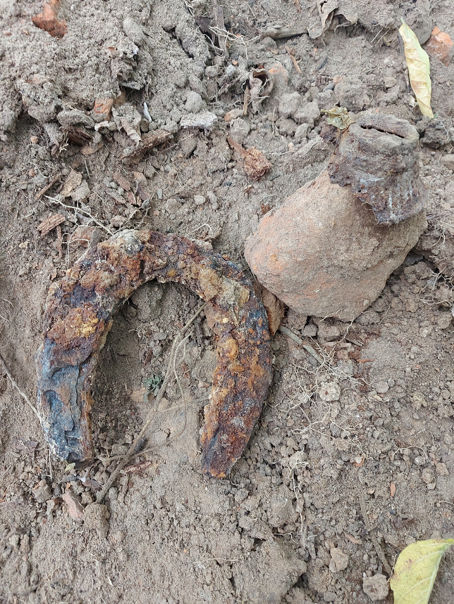 Доброго времени суток! Вчера объездил места по старине, как назло везде насадили кукурузу, а это надолго. Решил поехать и доделать свой шурф. Мыслей много, надеюсь на интересные находки, а там поглядим. Если будет пусто, то посмотрю еще одно урочище, его вроде перепахали. Решил сразу проверить угол возле печи. Цветных сигналов нет. Попалась подкова и от керосинки деталь. Как подкову увидел, сразу настроение пропало. Мне подковы счастья не несут, как-то на шурфе уже находил ее. Как итог находок практически не было. Прошел час. Была находка часть от ножа, но я ее сломал. А вот и первая монета 1 копейка 1954 года. Дежавю, тогда было так же и находок после не было. Подкова, да монетка. Хоть место меняй. Прошло минут двадцать. Монетка 3 копейки 1931 года. Если бы не закладные монетки, то фундамент прозвал бы домом трешек. Ну, сегодня вроде, что-то есть, но где серебро?! Где медь?! Рядом была вот такая висюлька. Наверное, конина. Спустя еще минут десять монетка. Три копейки, год не разобрать
