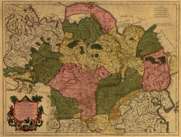 А лично я думаю, что она вообще предшествует "Тартарскому потопу", который ориентировочно произошел где-то в 1492-1502 гг. Вот после этого потопа, эпицентром которого была Восточная Сибирь, и погибла подавляющая часть Тартарии. Именно тогда ее уцелевшие западные провинции, пострадавшие от катаклизма в меньшей степени, и стали независимыми. Именно этот процесс в официальной истории назван как "распад Золотой Орды". Иван Грозный и пытался соединить воедино эти уцелевшие западные территории Тартарии. Так что в любом случае эта карта не отражает реальную историческую обстановку на 1706 год. А в самом лучшем случае, если она не выдумана полностью, то скопирована с еще "допотопной" карты Тартарии XV века.